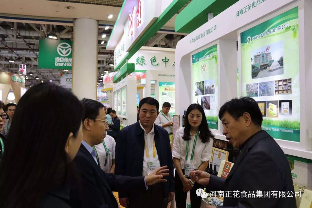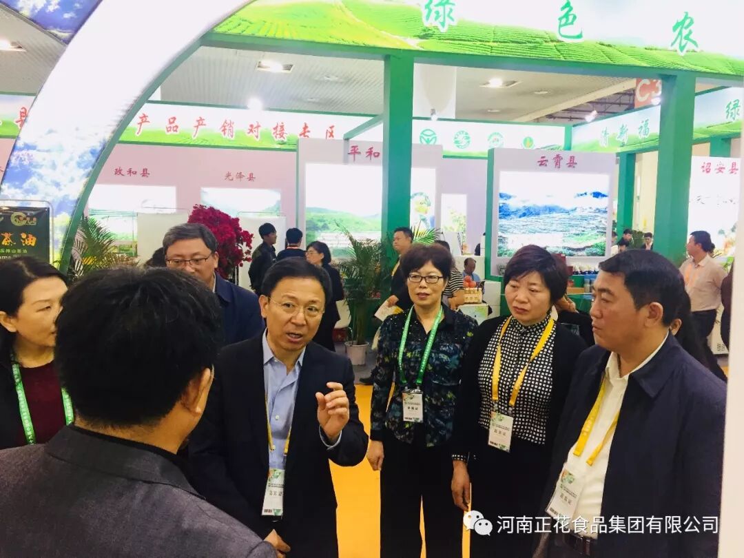 河南省农业厅刘保仓副厅长,省农检中心余新华主任,正阳县政协副主席黄翠平等领导巡视河南展厅河南正花食品集团展位。在品尝过正花花生后,领导们纷纷称赞正花花生口口留香、味道独特、焦香酥脆,并对正花花生以后的发展方向提出了建设性建议。